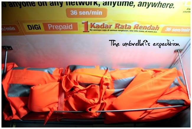 Chris brought his fruity umbrella and 3 packet of biscuits..and he eat all by himself -.-